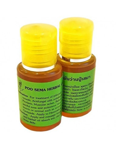 - для лікування забитих місць – трав'яна масляна настойка Poo Sema Herbal Oil швидко знімає больові відчуття, прискорює загоєння ран, сприяє швидкому розсмоктування синців;